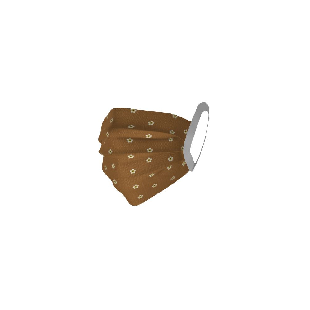 Mascarilla ORIS 41 higiénica reutilizable Marrón con flor blanca Goma blanca a orejas