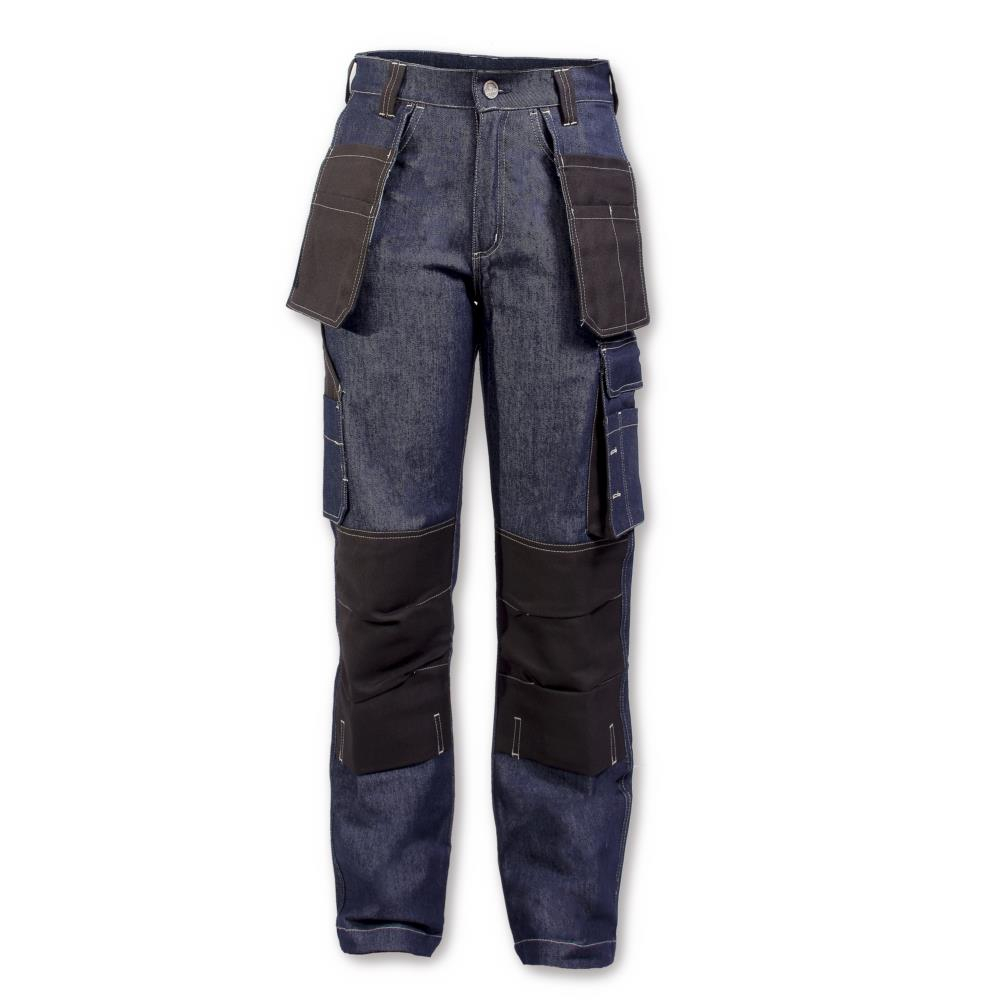Elastic denim jeans multipockets with zipper and button closure. Rounded pocket in mouth and complementary pocket with different sections in waist. On left leg multi section pocket with bellows and on right leg hammer pocket. At the back pocket type plaston with bellows and placket with velcro closure. Contrast colored kneepads with opening to insert plate. Made in 98º/ₒ Cotton and 2º/ₒ elastane. 400 gm2. Elastic for excellent comfort. ITS Jeans range of products is especially designed for the day-to-day work. We offer fireproof protective garments made of state-of-the-art fibers or comfortable traditional fireproof cotton for works with thermal risk and also with elastic finishing for a higher comfort. In order to achieve this comfort. we take care of all details: very resistant sewing. flap protected pockets. made without metal accessories and other details. In the fire-resistant collection. these garments offer protection against fire. molten metal spills and heat caused in an electric arc. They are also antistatic so that you can use them in Atex areas. We not only care about quality. we also make garments with a meticulous design so that you can use them in your daily life. Your jeans collection for all occasions. COMPOSICIÓN: