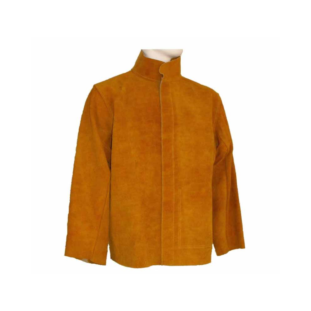 Leather welder Jacket. Articulated sleeves. Interior pockets. Adjust Velcro collar and cuffs. Sewn with KEVLAR® thread. Fastening with Velcro and snaps. It is made with bovine leather The Welder clothing range has been designed with the recommendations of professional welders in mind. This means that the clothing manages to solve many of the common problems associated with welding clothing. The ergonomic design means that the clothing adapts perfectly to the wearer. They can be adjusted to fit each person. The clothing is made with the best croupon leather. in a gold colour that gives the range a fresh and distinguished look. The seams are reinforced with KEVLAR® thread. The range includes the following items of clothing: jacket. trousers. apron. shoulder length sleeves and leggings. All of the items in the range can be made to measure. Category II PPE Personal protective equipment. UNE-EN ISO 11611:08 Class 2. COMPOSICIÓN: